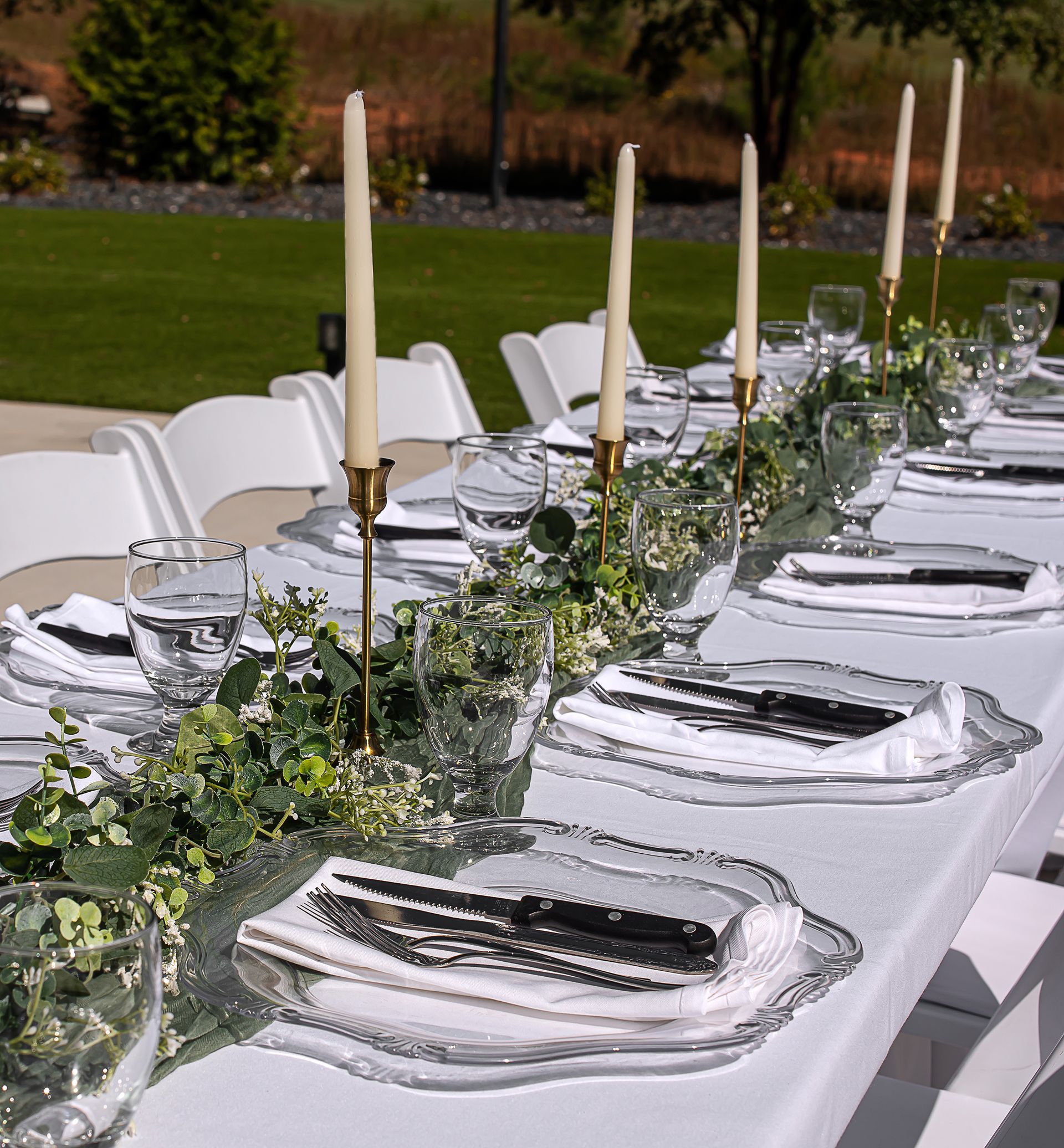 - Event Rentals include: 16 round and rectangular tables, 100 white cushioned garden chairs, and premium linens. Need more? We offer additional chairs or upgrades to Chiavari chairs in various colors.